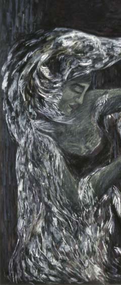 Taiteeni lähtökohtana on myyttinen henkilöhahmo yksinään vieraassa, avarassa maisemassa, joka kuvastaa näynomaisesti hänen sieluaan.