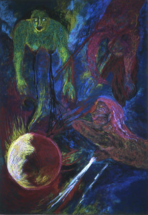 Kolme neitoa valuttaa taivaalta maitoa rinnoistaan; valkoinen maito on terästä, punainen maito on ruosterautaa ja yksi maito on mustaa rautaa. He leijailevat kirkkaassa auringonpaisteessa miltei kärventyen.